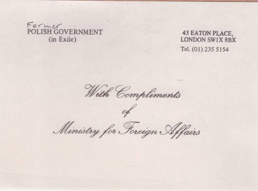 Gratka dla koneserów: dołączony akcydens z pozdrowieniami od Ministerstwa Spraw Zagranicznych.