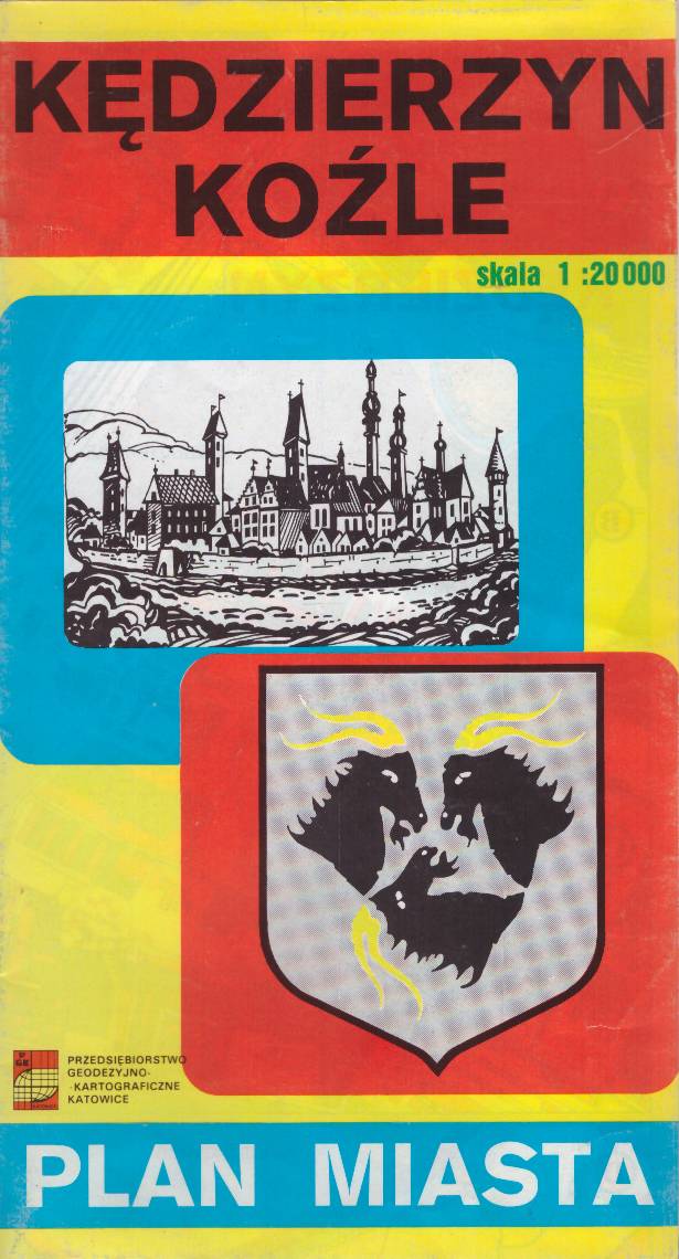 KĘDZIERZYN-Koźle. Plan miasta. Skala 1:20 000. Poboczny plan centrum w skali 1:10 000. Katowice 1991. Wydawnictwo Kartograficzne PGK Katowice. wyd.1.