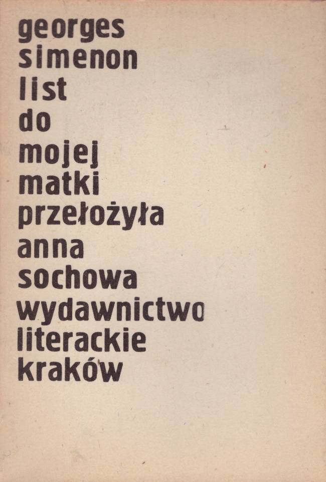SIMENON Georges, List do mojej matki. Przełożyła Anna Sochowa. Kraków 1981. Wydawnictwo Literackie. wyd.1. s.92. opr. oryg. kartonowa. 16 cm.