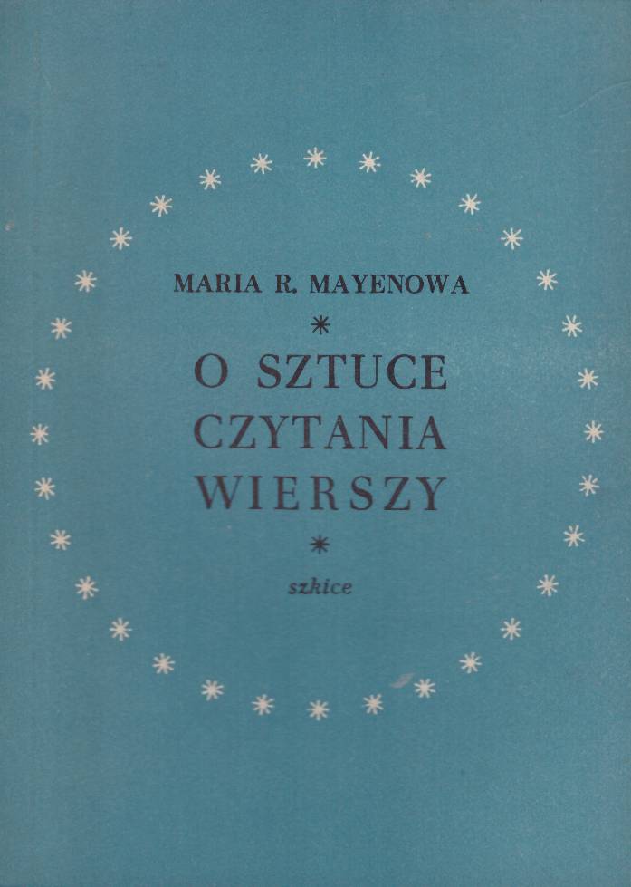 MAYENOWA Maria R., O sztuce czytania wierszy. Szkice. Warszawa 1963. Wiedza Powszechna. wyd.1. s.177. opr. oryg. kartonowa. 17 cm.