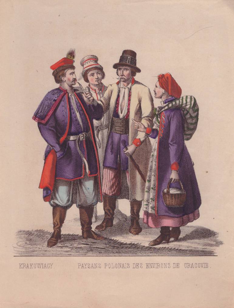 Krakowiacy. Paysans Polonais des Environs de Cracovie. Litografia kolorowana. Rok 1863.