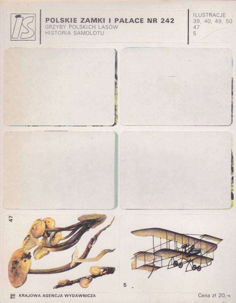 Dodatkowo 12 arkuszy z niektórymi ilustracjami samoprzylepnymi do serii Grzyby polskich lasów oraz Historia samolotu.