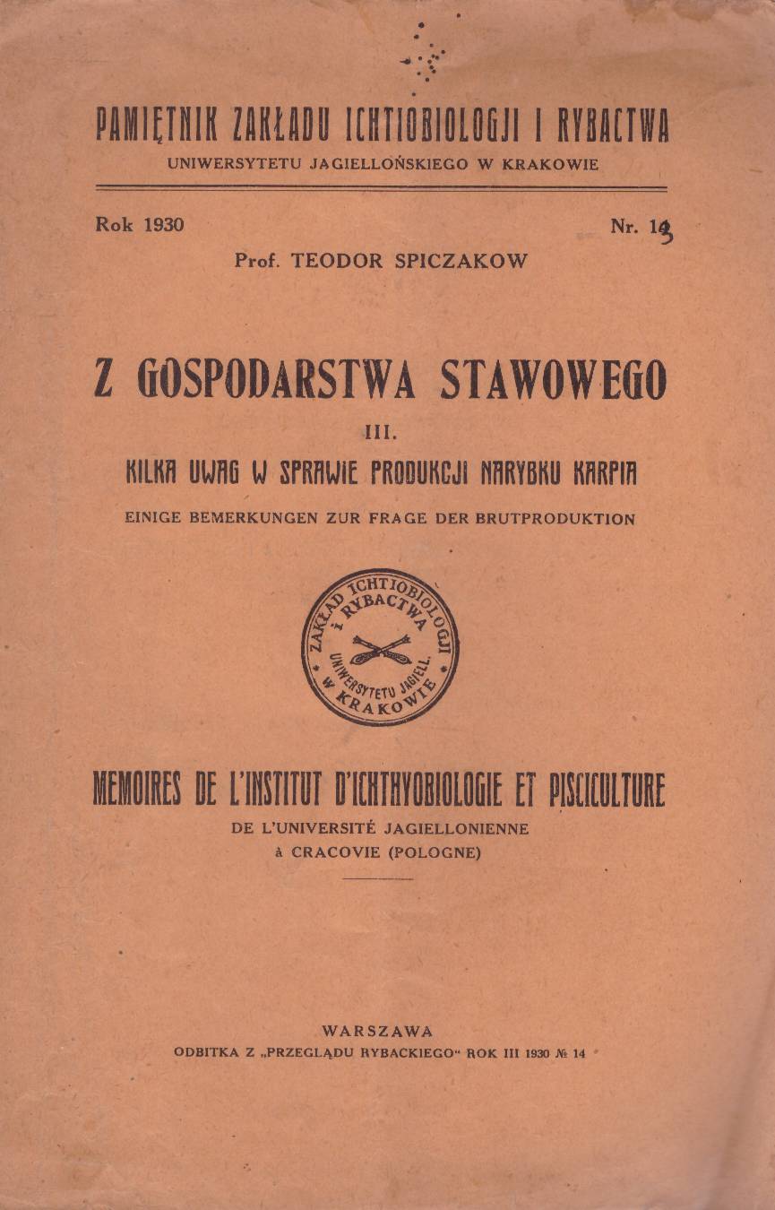 Z gospodarstwa stawowego. III. Kilka uwag w sprawie produkcji narybku karpia.